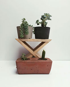 Diseño de logotipo para la marca, desarrollo y producción de macetas de concreto, sesión fotográfica.